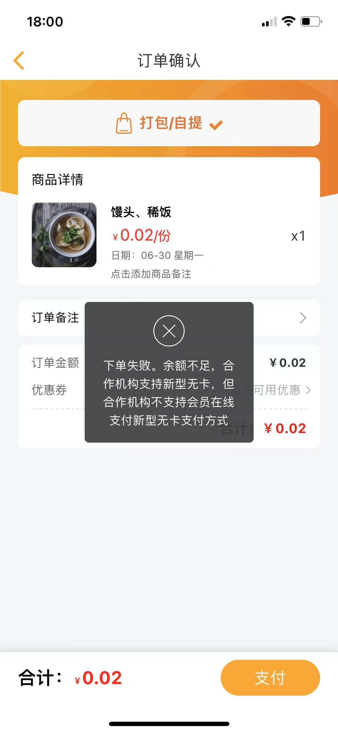 实体卡支付失败。未查询到该会员卡信息,请联系食堂管理员。